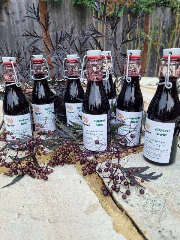 The elderberries in this syrup have been collected from woods in Marlow, Buckinghamshire.